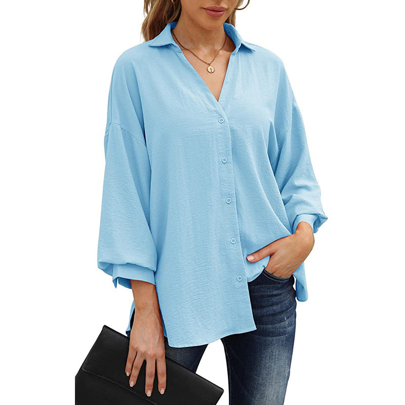 Our turn-down collar blouse embodies a casual and trendy style, perfect to complete your wardrobe. The latest designs in women's tops are found in this model, offering customization options to meet your unique tastes.
