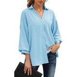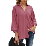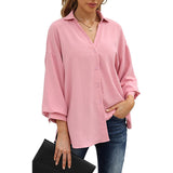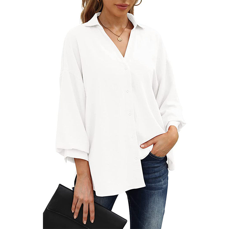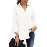 Discover our superb turn-down collar blouse, a true wardrobe essential for modern women! With its short length and solid pattern, it combines elegance and simplicity. Its turn-down collar neckline and V-neck bring a touch of sophistication to your outfit.